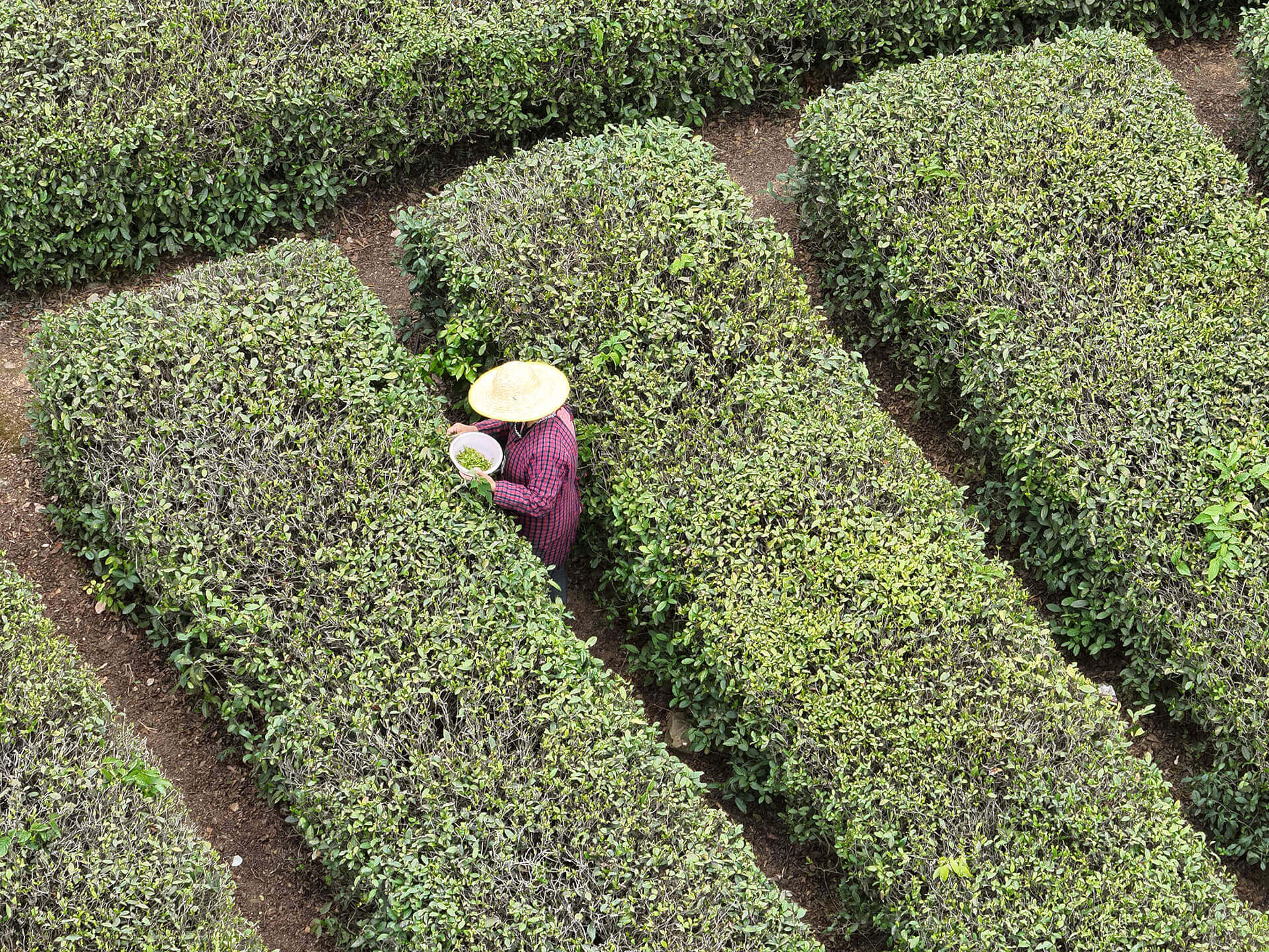 沿著山路拾級而上,我們可以看到一片廣袤的茶園,茶樹芳新,茶香彌漫,小徑上鋪滿一路的五彩花朵,偶爾還能看到采茶人忙碌的身影。在山的最頂端有一座涼亭,名為“吳亭”,在那里可以縱覽整個太湖美景,與小梅山遙遙相望。大家還可以在吳亭邊的“越臺”里賞景品茗,靜享悠閑愜意的恬淡時光。